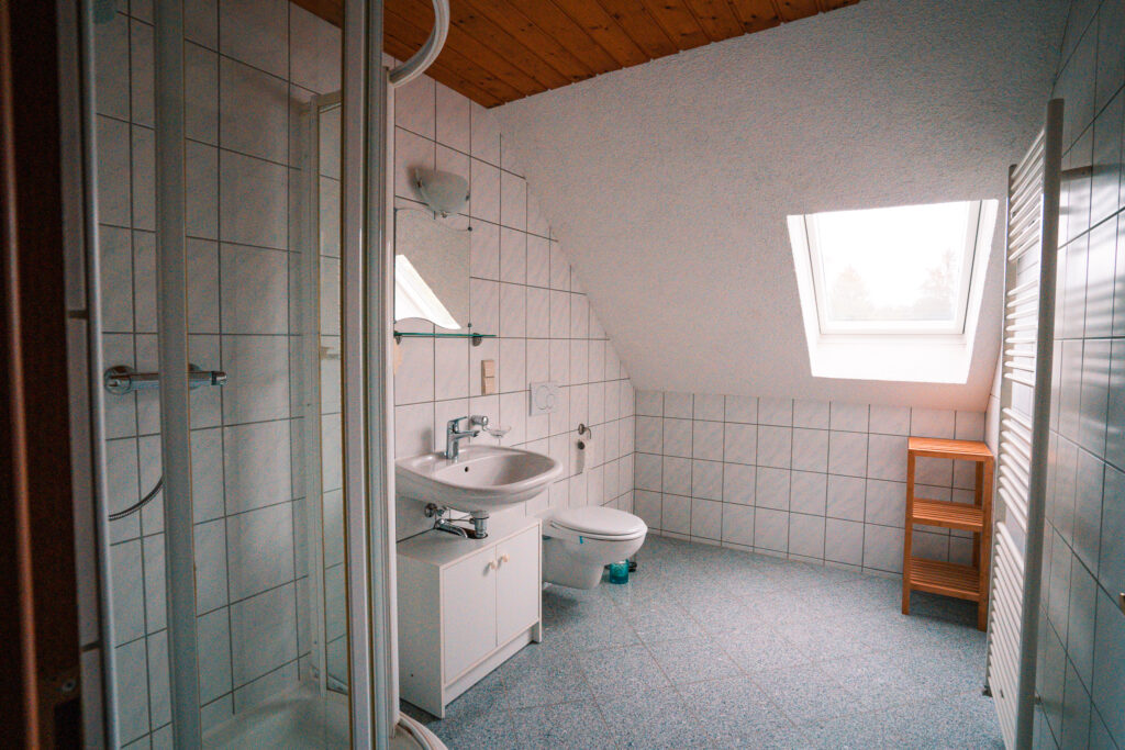 Das Badezimmer ist mit einer Dusche und für jeden Gast mit Hand- und Badetüchern ausgestattet. Zudem wird die WC-Spülung mit Brunnenwasser betrieben.