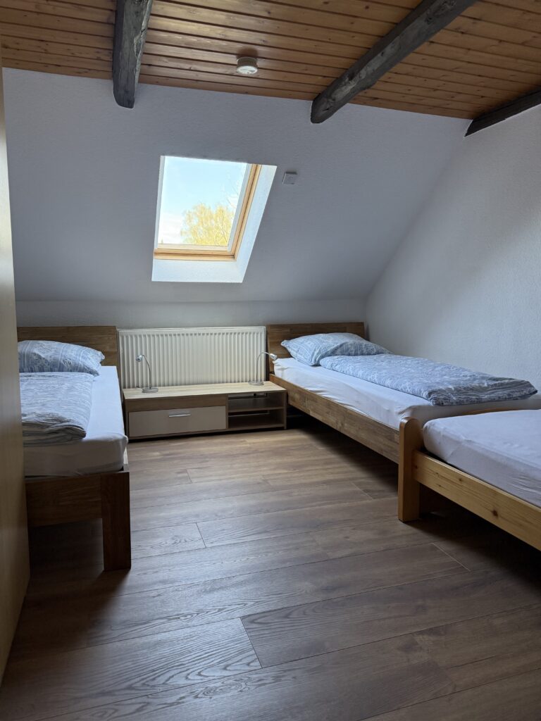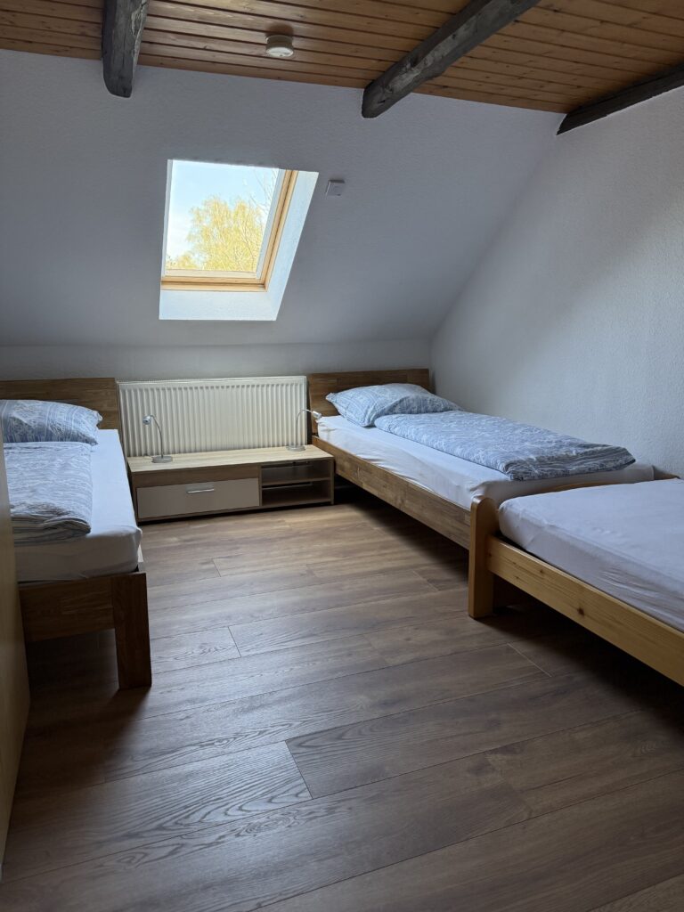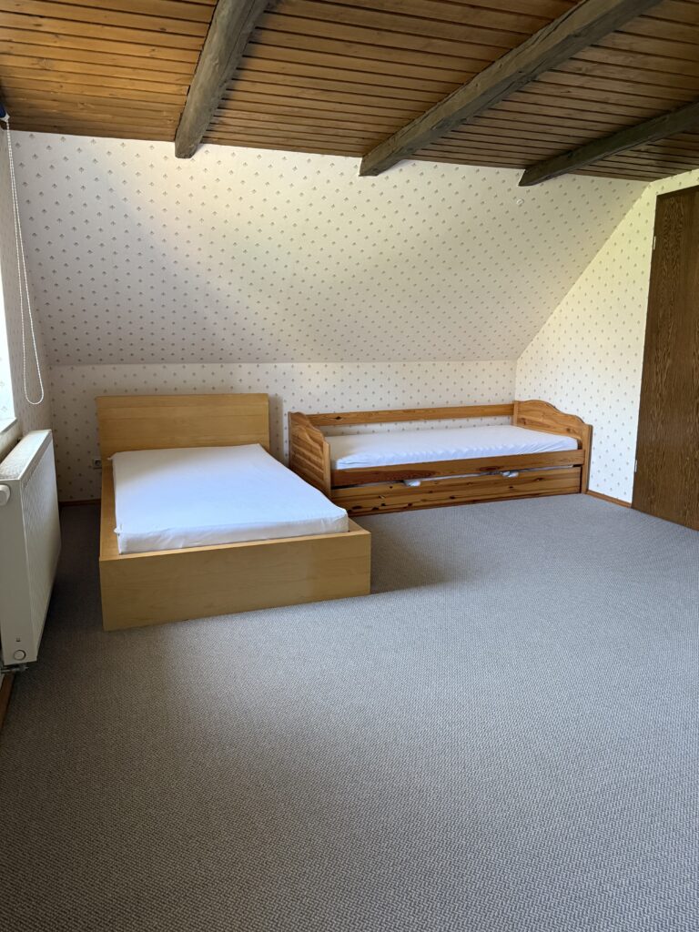 Das Schlafzimmer 2 ist mit drei Einzelbetten ausgestattet.